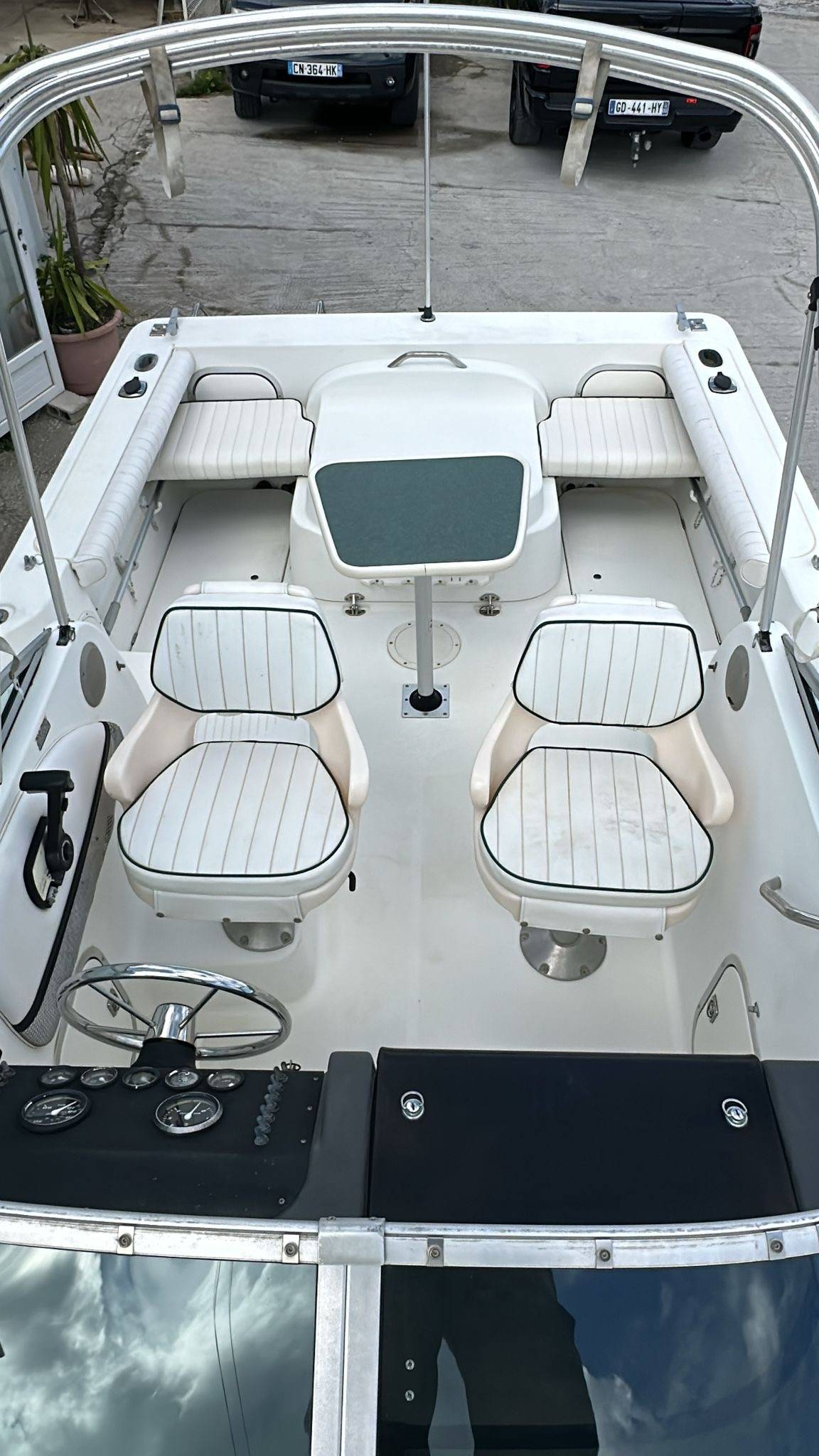 ✔️ Confort & Espace : Grande cabine 2 couchages, sellerie impeccable, table pique-nique